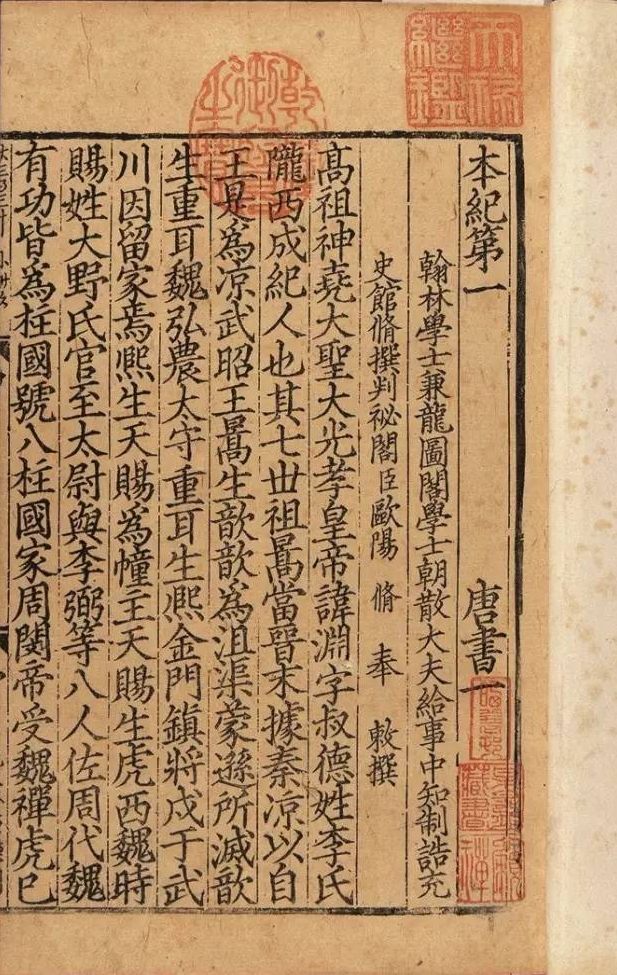 记载唐朝历史的纪传体史书《新唐书》,共225卷,约从宋仁宗庆历四年(1044年)至嘉祐五年(1060年),由宋祁、欧阳修等撰成。